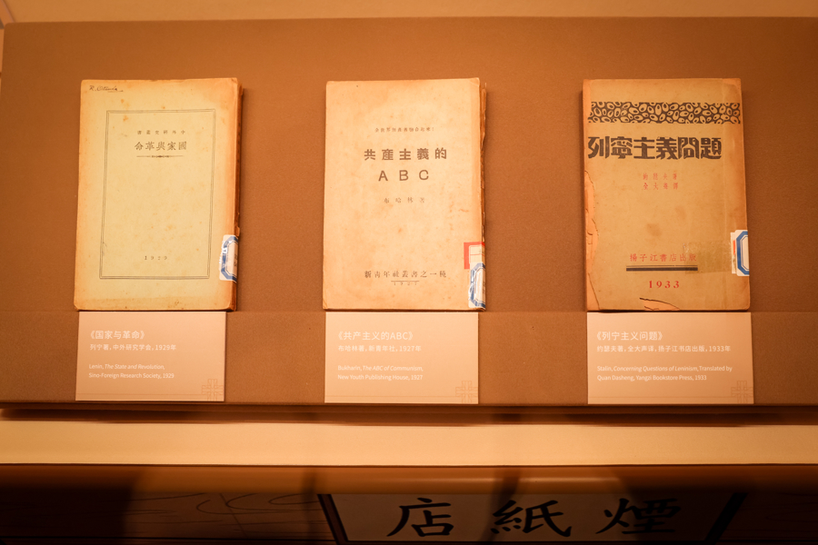 祥康里,今天的新昌路99号,1931年至1932年间,曾是中共中央秘密印刷厂旧址。顾顺章叛变后,负责转移中共秘密印刷厂的钱之光选择了闹市中的这幢新式里弄开展工作。正在施工的国际饭店用嘈杂之声掩盖了印刷机器的轰鸣。钱之光用烟纸店老板的身份做掩护,混迹于弄堂之中,除了印制《党的建设》《中央通讯》《红旗周报》《布尔塞维克》等刊物外,还翻印了《共产主义ABC》《列宁主义问题》《国家与革命》等经典著作,以及大量的苏区文件和有关罢工斗争的传单。展厅中陈列的《时时周报》《光明之路》等,均为《红旗周报》伪装封面。正是在这样隐秘而活跃的文化氛围中,共产主义的火种悄然传递。
